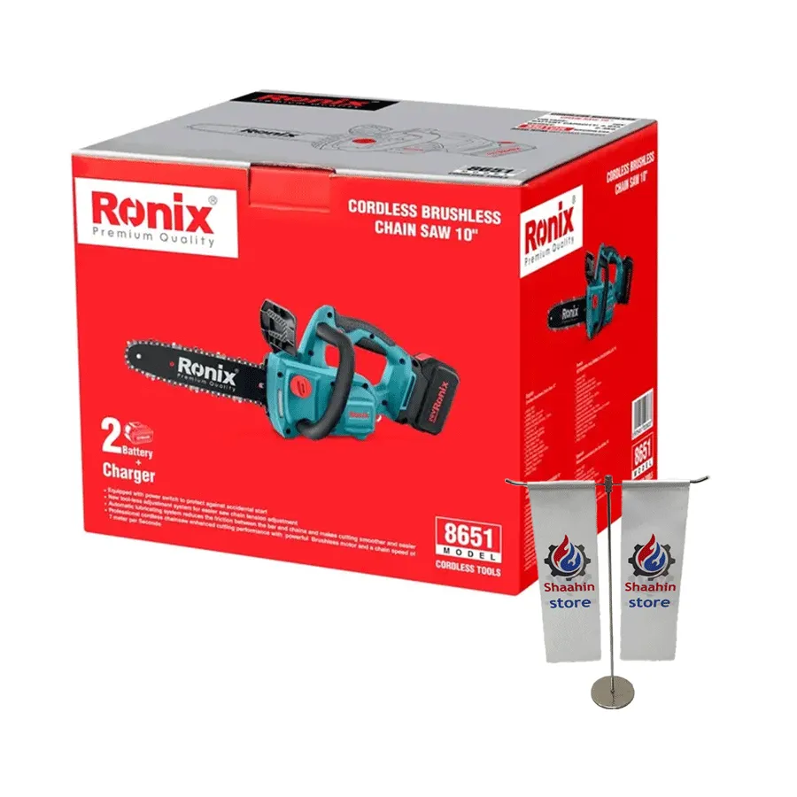 استفاده از باتری لیتیوم یونی 20 ولت 4 آمپر ساعت، سیستم روغنکاری خودکار زنجیر، تنظیم کشش زنجیر بدون نیاز به آچار و مجموعه کامل سیستم های ایمنی، این اره رونیکس را به گزینه ای ایده آل برای کاربران حرفه ای و نیمه حرفه ای تبدیل کرده است. طراحی سبک، کمصدا و ارگونومیک اره زنجیری شارژی 8651، امکان کار طولانیمدت بدون خستگی را فراهم میکند.